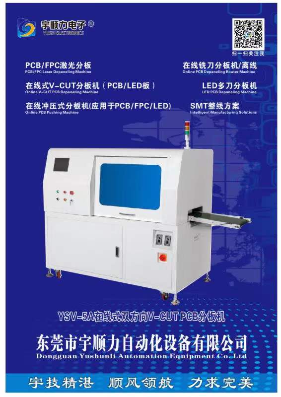 1、YSV- 5A井字型分板机,是配有横向与纵向分板的双重分板的机器,解决双向井字型的产品分板问题。